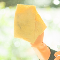 鏡やガラスなどの広い面を磨く場合は、乾いた布で