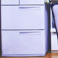 次に、冷蔵庫の外です。冷蔵庫の上のホコリは見落としがちな汚れで取り上げました。四角い冷蔵庫、上でなければ、下でしょうか。そうです、冷蔵庫の下の部分です。